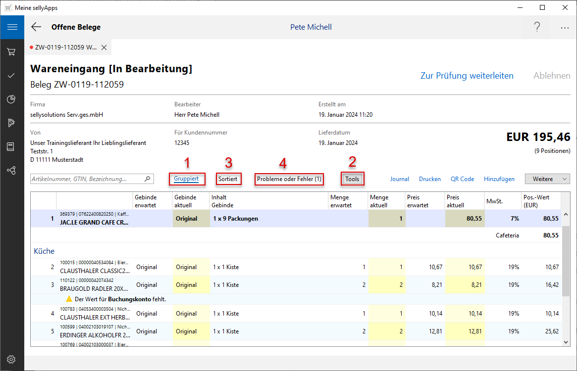 Im Beispiel handelt es sich um 1 Position, die durch den Bearbeiter gesichtet werden muss.