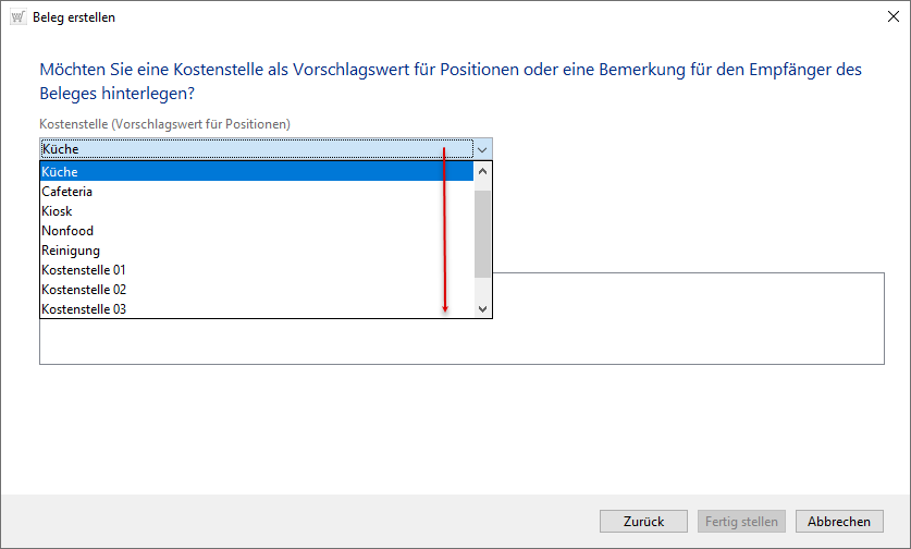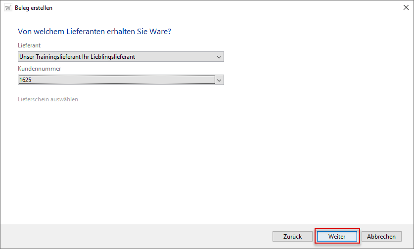 kommen Sie zum nächsten Schritt der Belegerstellung.