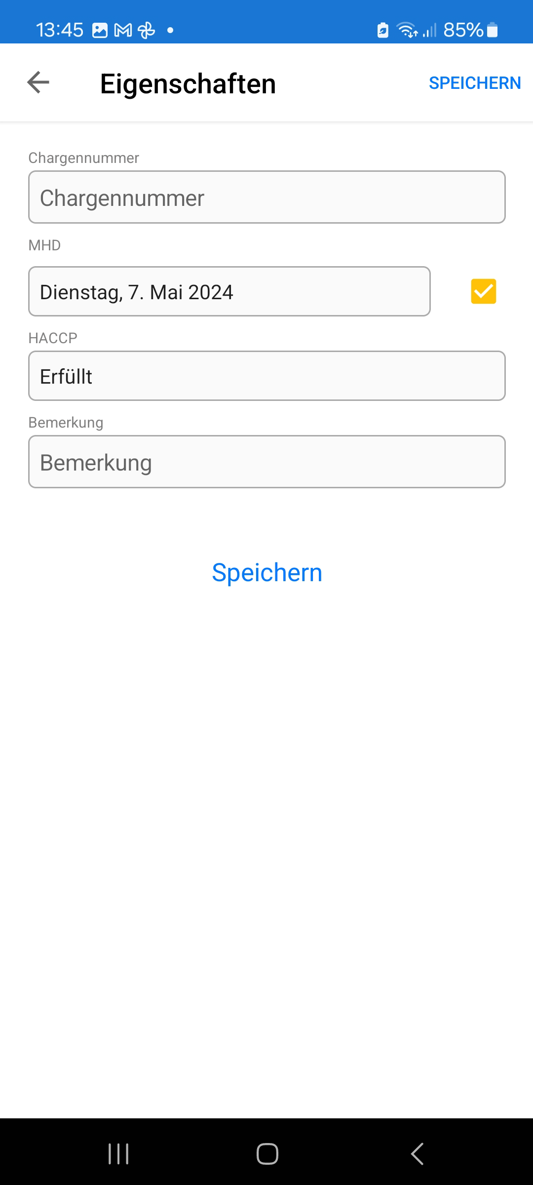 Um die Chargennummer oder das MHD-Datum einzutragen, die HACCP-Angabe zu wählen oder eine Bemerkung zur Position zu hinterlegen,