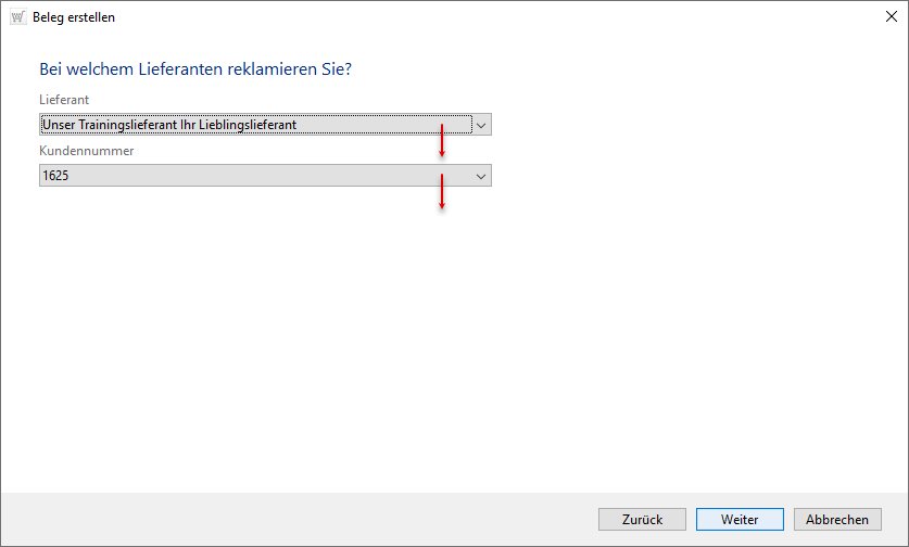 kommen Sie zum nächsten Schritt der Belegerstellung.