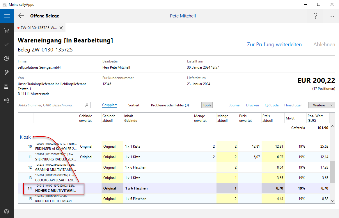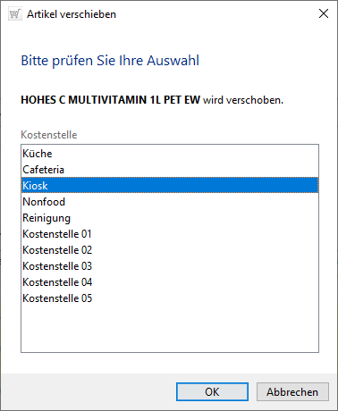 Die verschobene Belegposition ist jetzt unterhalb der gewählten Kostenstelle (Kiosk) zu finden.
