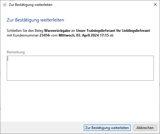 Der Beleg ist in allen Positionen fehlerfrei und könnte von dem Mitarbeiter sofort ohne Prüfung- bzw.- Bestätigungsschritt gebucht werden, wenn dieser ein entsprechendes Recht besitzt.