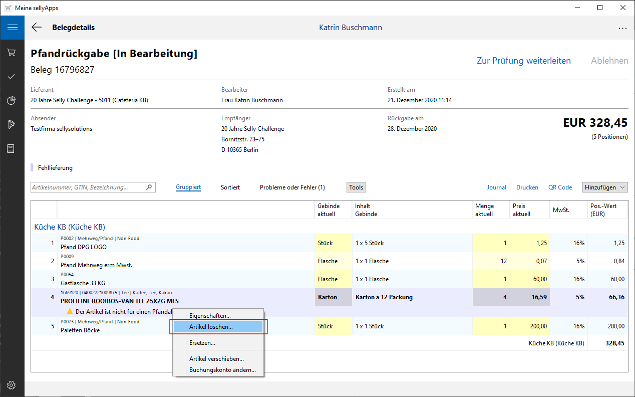 sellyApps, können Sie, nach Aufruf der Belegdetails,