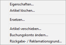 Über den letzten Eintrag im Mausmenü können Sie den Reklamations- oder Rückgabegrund ändern.