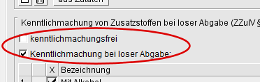 **Veraltete Zusatzstoffe werden mit „**“ markiert und nur noch angezeigt, wenn sie mit ja oder nein der Zutat zugewiesen wurden.