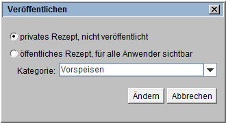 Mit Auswahl der Option privates Rezept, nicht veröffentlicht und Klick auf [Ändern] wird die