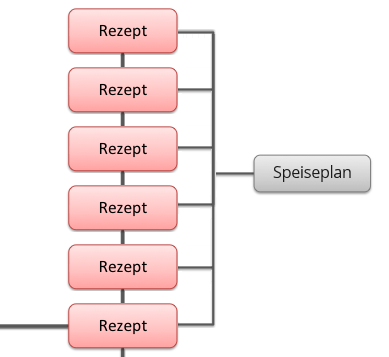 Werden die Zutaten zu einem Rezept zugeordnet und mit einer Menge versehen, werden die Rezeptnährwerte aus den mitgebrachten Einzel-Zutat-Nährwerte berechnet.