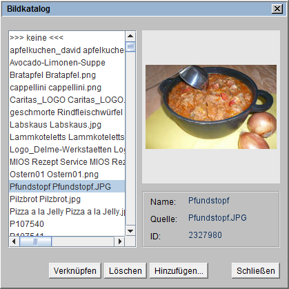 einen Bildnamen in der Liste und klicken auf [Verknüpfen]. Der Bildkatalog wird geschlossen und im