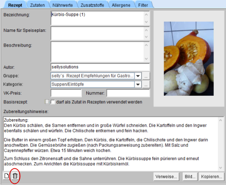 Löschen Sie ein Rezept, welches in einem Speiseplan enthalten ist, bleibt das Rezept zwar als Eintrag bestehen, aber die Eigenschaften