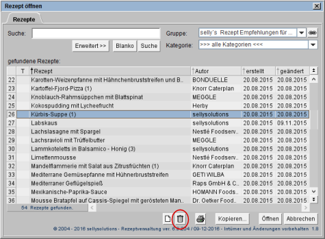 | Sie können entweder im Dialog Rezept öffnen oder im Dialog