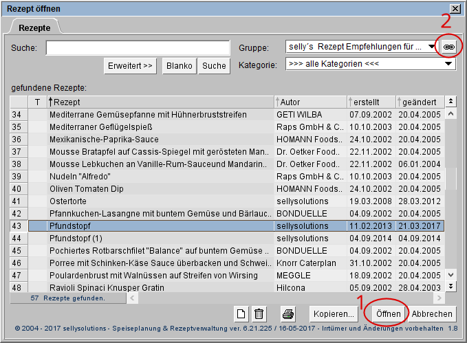 Rezept-Editors und öffnen den Dialog Rezept öffnen. |