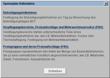 Sie legen die Anzahl der Beköstigungsteilnehmer fest und können bereichs- und gruppen- weise kalkulieren.
