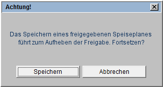 Soll ein freigegebener Speiseplan geändert und gespeichert werden, wird mit einer Sicherheitsmeldung nachgefragt. |