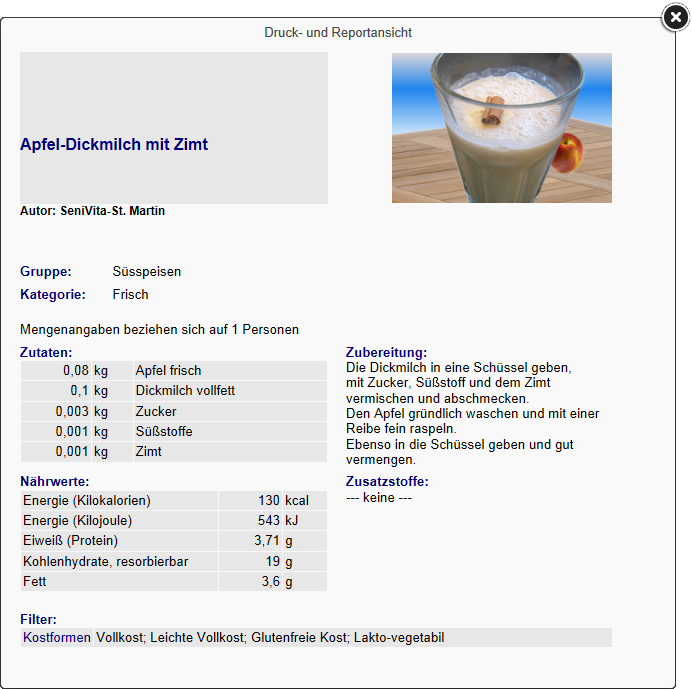 Rezeptdruck aus Speiseplan
