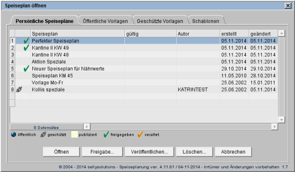 Sie öffnen den Dialog Speiseplan öffnen und markieren den Plan, den Sie veröffentlichen möchten. |