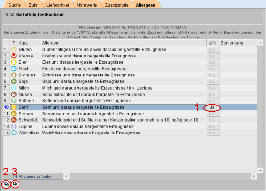 Zusatzstoffen auch die Allergene an Zutaten, Rezepten und Speiseplänen zu