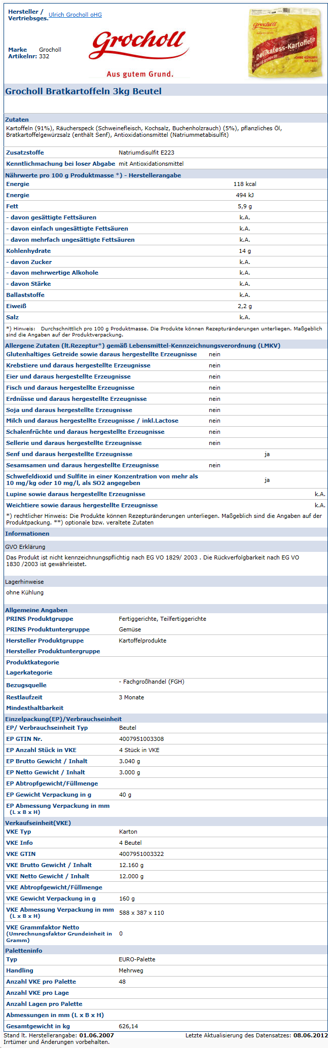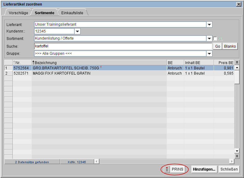 rufen Informationen zum Artikel aus der PRiNS-Datenbank ab oder