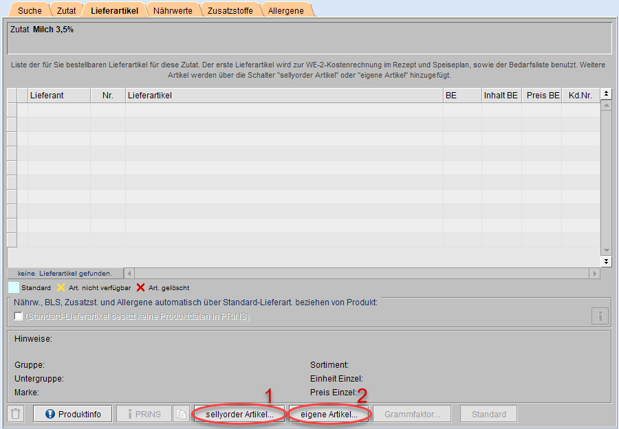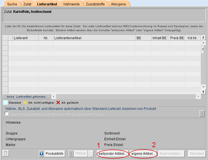 wählen Sie für Ihre Zutat einen Lieferartikel aus. Es