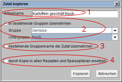 Option 3 + 4: Sie kopieren die Zutat und übernehmen den