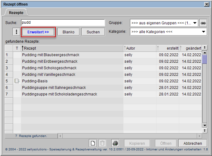 Die erweiterten Suchfelder schalten Sie mit Klick auf die Schaltfläche [Erweitert >>] (s. o. Markierung 5) zu.
