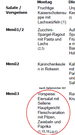 nachgestellte Anzeige der Legende an der Speisenbezeichnung.