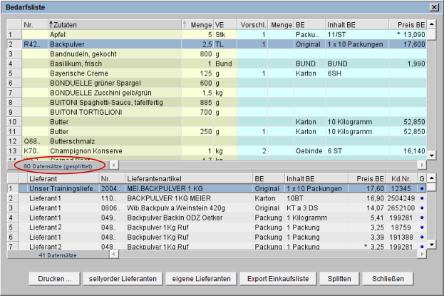 Damit hat sich die Bedarfsliste auf 80 Datensätze verringert (s. Markierung).