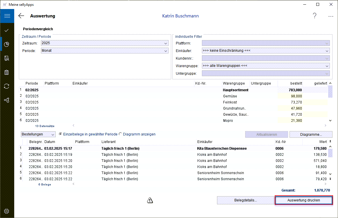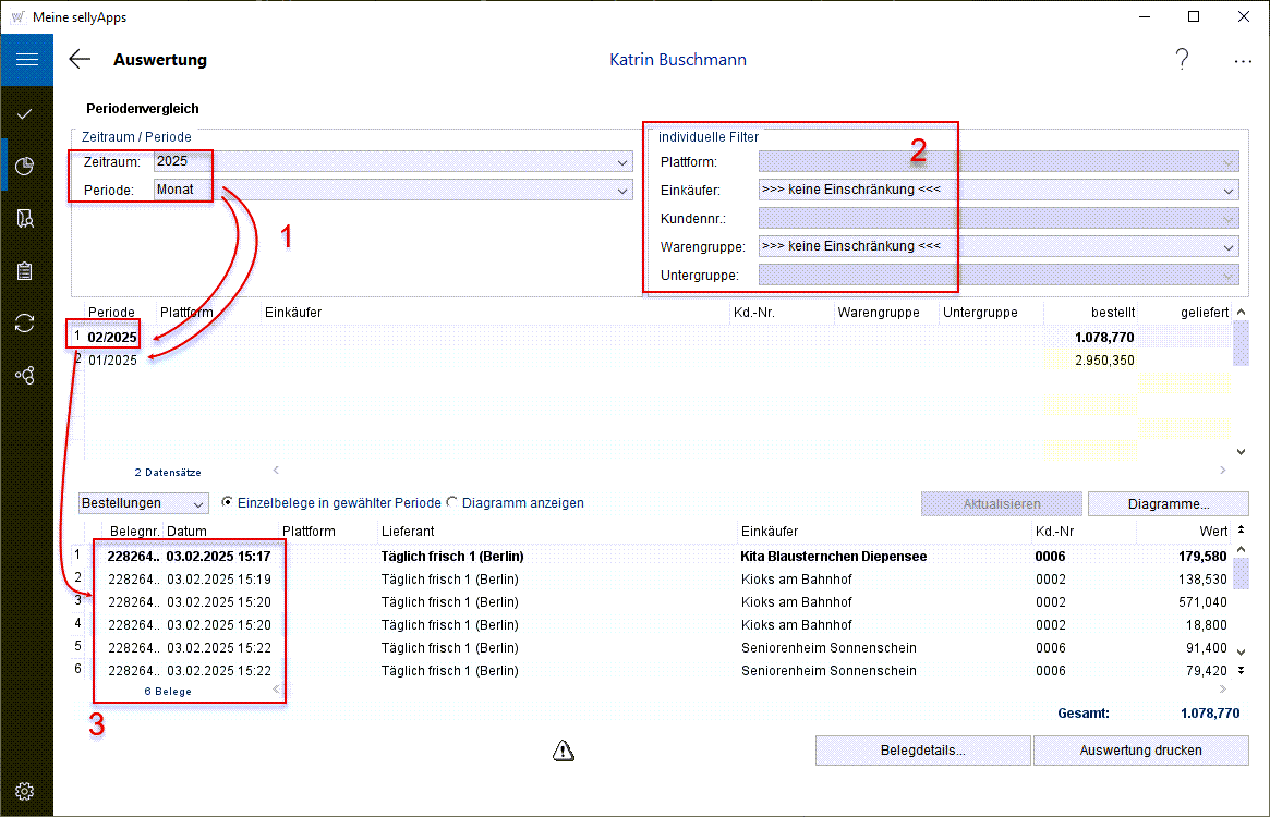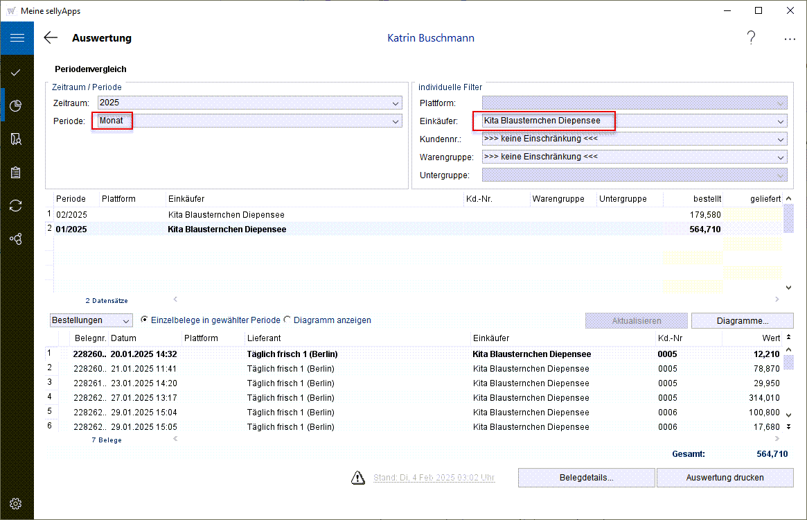 Im unteren Bereich werden die Einzelbestellungen im gewählten Zeitraum angezeigt
