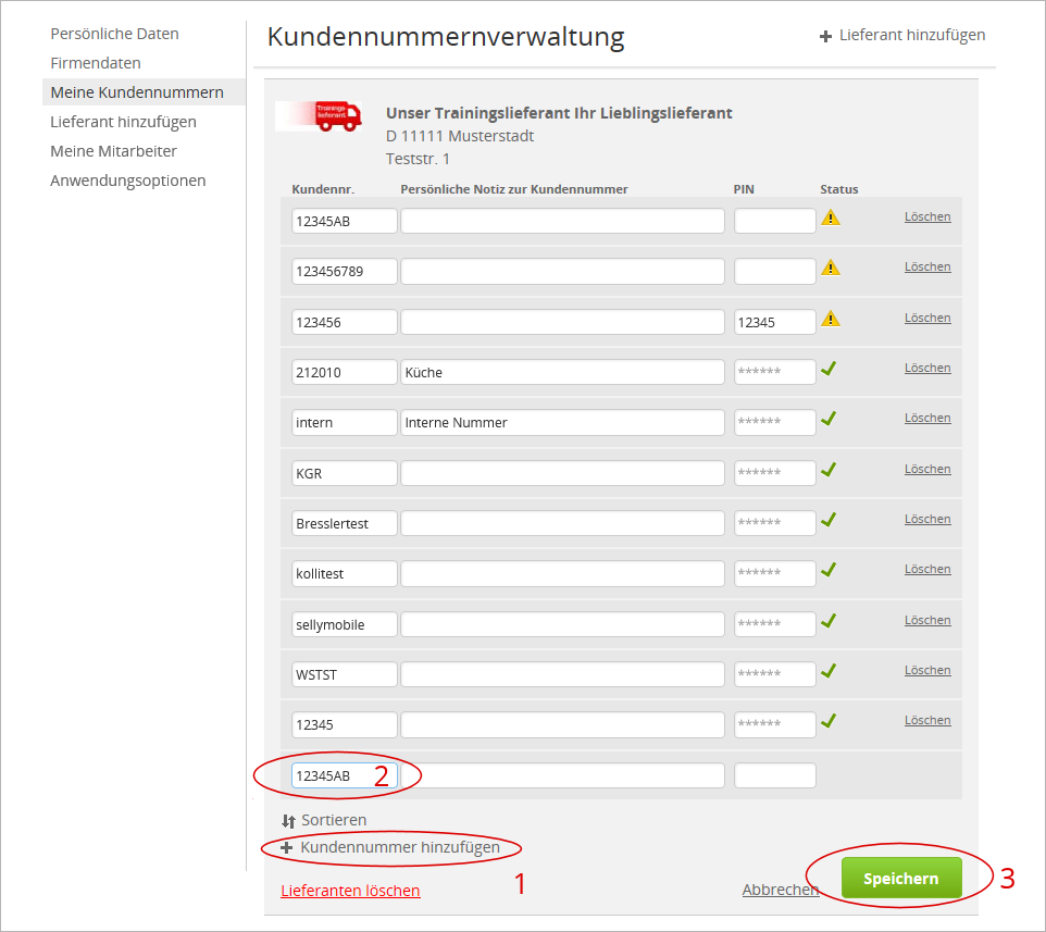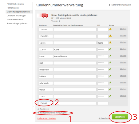 Meine Kundennummern/Kundennummernverwaltung
