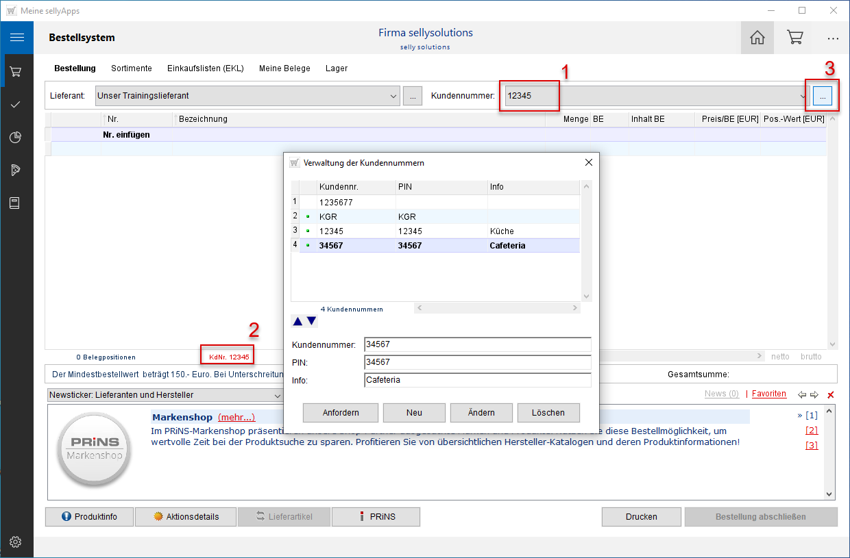 Anderenfalls wird die Kundennummer im Bereich Bestellung