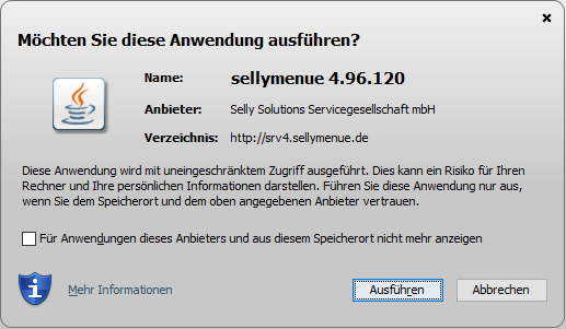 Mit Anklicken einer Desktopstartvariante erhalten Sie einen Javahinweis, müssen nachfolgend das Ausführen zulassen und melden sich abschließend