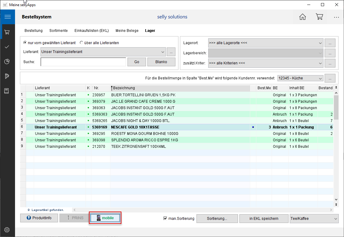 Hinweis: Wenn Sie die Lagerlisten auf Ihr mobiles
