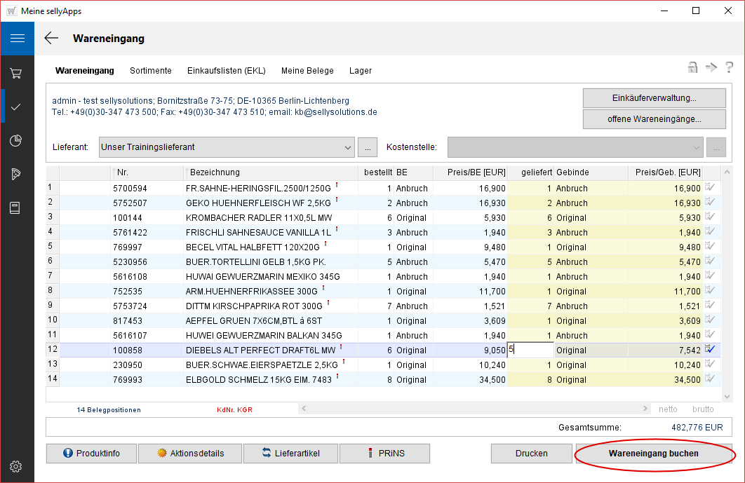 Nachdem Sie die Wareneingangsbuchung abgeschlossen haben, wird der Bereich Wareneingang geleert. Sie können im Bereich Meine Belege alle für den jeweiligen Wareneingang hinterlegten Informationen jederzeit wieder einsehen.
