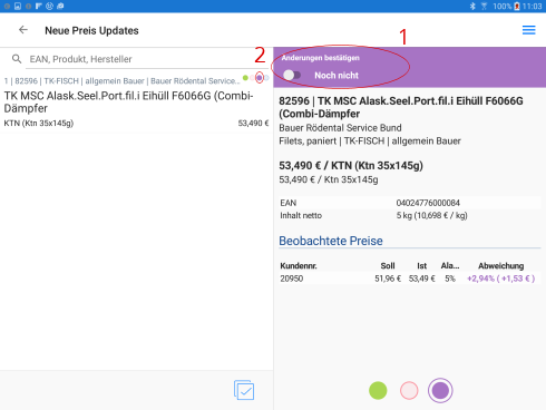 Um zu erfahren, für welche Artikel diese Updates gelten, klicken Sie direkt auf den Kreis und erhalten eine Auflistung aller Artikel mit Änderungen.