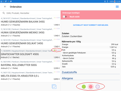 In jeder Artikelsicht, ob in Sortimente (Ordersätzen), Ihren Einkaufs- oder Kühlhaus- und Lagerlisten und im Warenkorb begleitet Sie die Punktlegende.