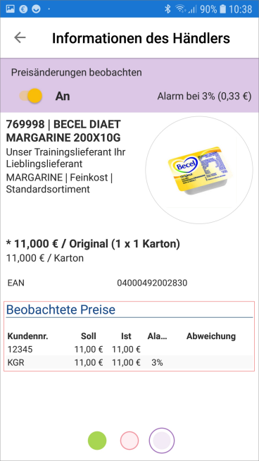 Somit erhalten Sie eine Information, wenn sich der Artikelpreis (in dem Beispiel) im Intervall +/- 5% bewegt.