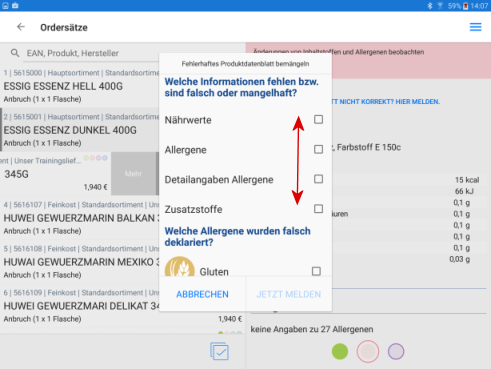Haben Sie die zusätzlichen Produktdaten zugeschaltet, angesehen und falsche oder fehlende Angaben festgestellt, können Sie veranlassen, dass der Hersteller bzw. Lieferant eine Information dazu erhält.