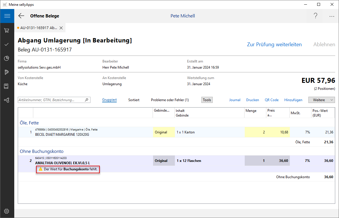 Im Bildbeispiel fehlt an der unteren Belegpositionen die Angabe eines