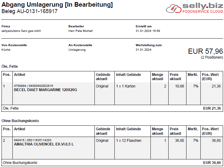 s. a. Abgang Umlagerung Abgang Umlagerung buchen