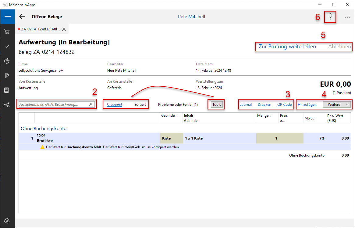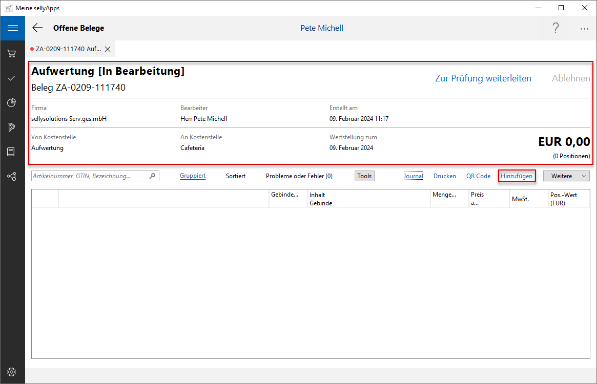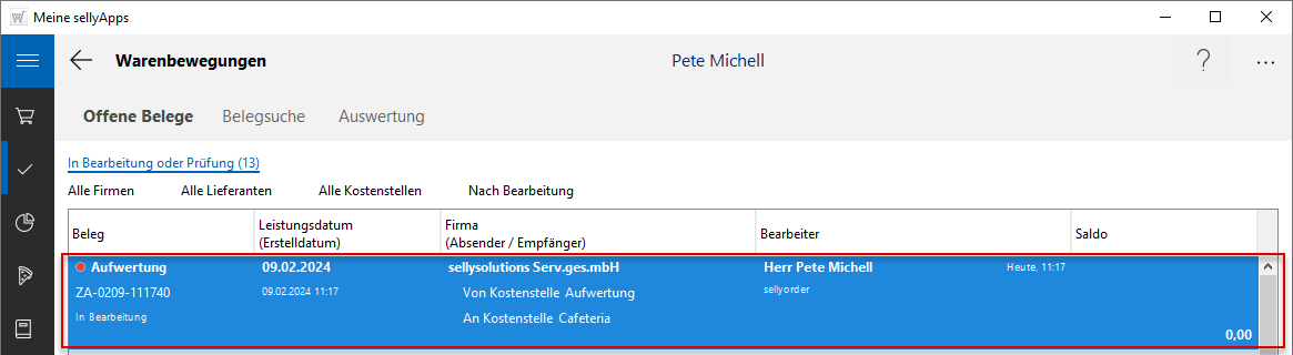 Um den Beleg weiter zu bearbeiten, öffnen Sie, mittels