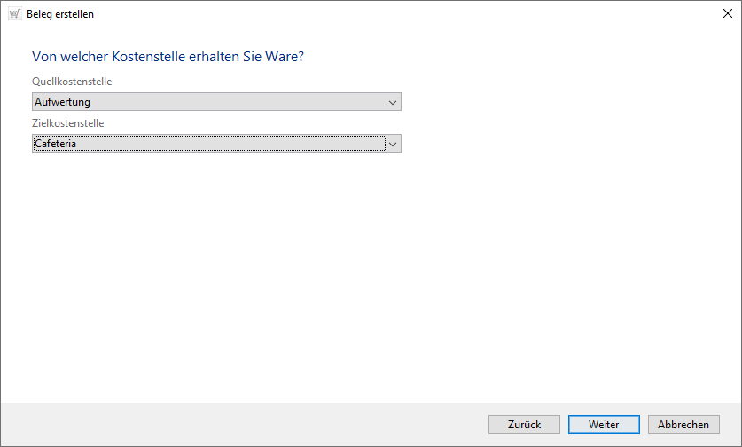 Hier sehen Sie alle Kostenstellen, basierend auf Ihren Kundennummern, aufgelistet, nehmen eine Auswahl der Quell- und Zielkostenstelle vor bzw. belassen die Vorschläge, bevor Sie mit Klick auf [Weiter] zum letzten Schritt gelangen.