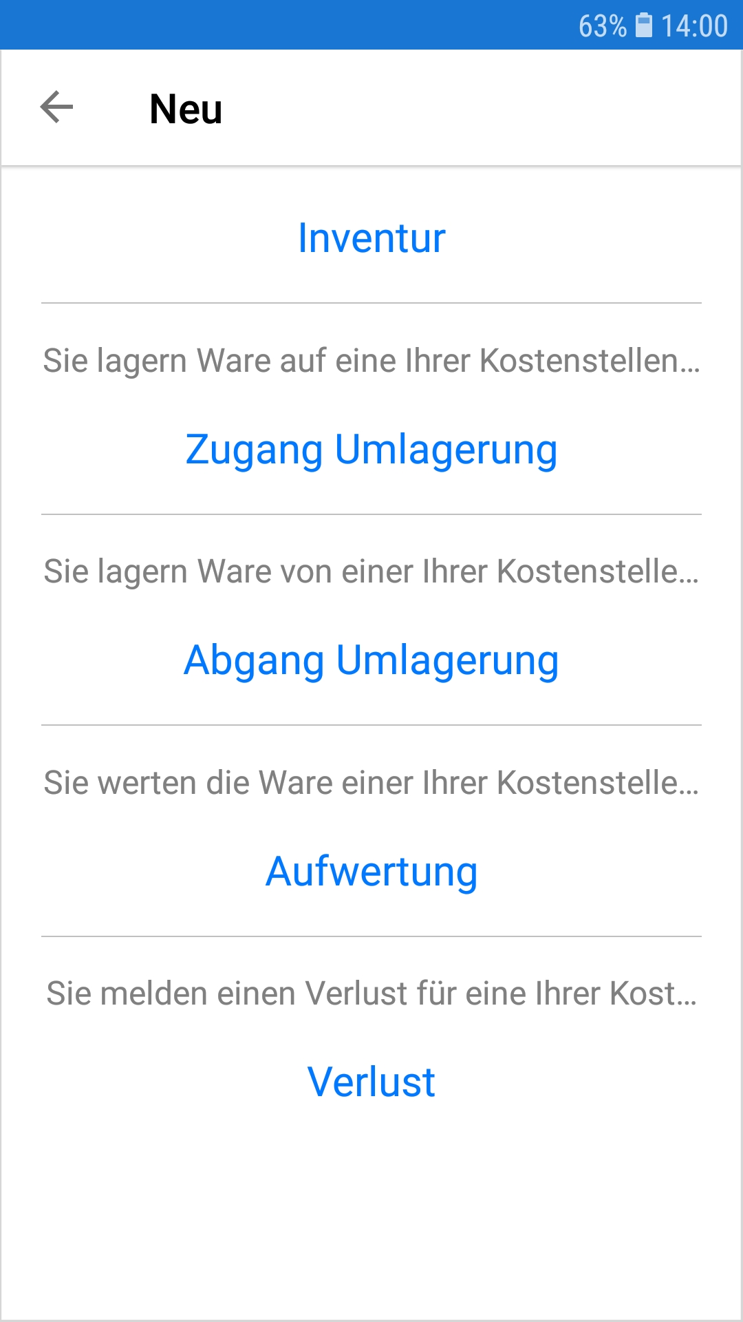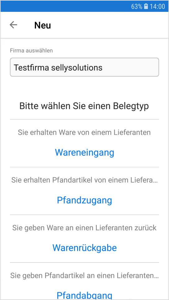 Nachfolgend legen Sie den zutreffenden Belegtyp durch Antippen fest.