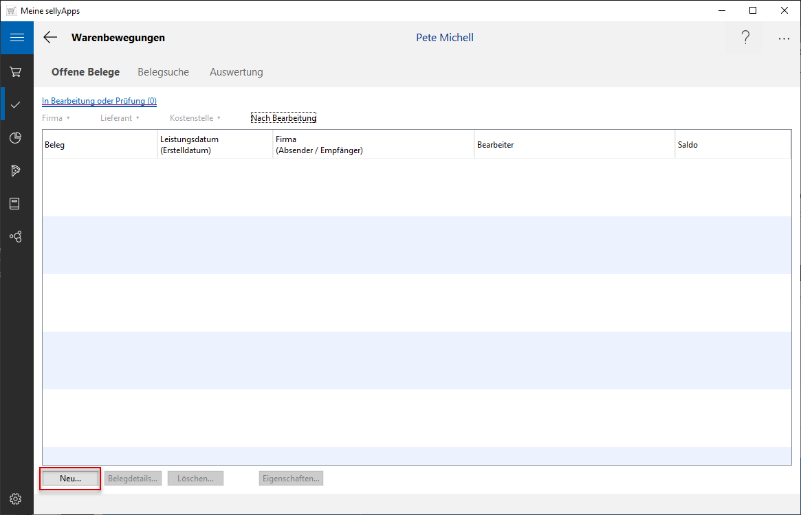 Beginnend werden alle Ihre offenen Belege angezeigt. Sollten Sie keine Belege erstellt haben, bzw. alle Belege abgeschlossen sein, ist diese Liste leer.