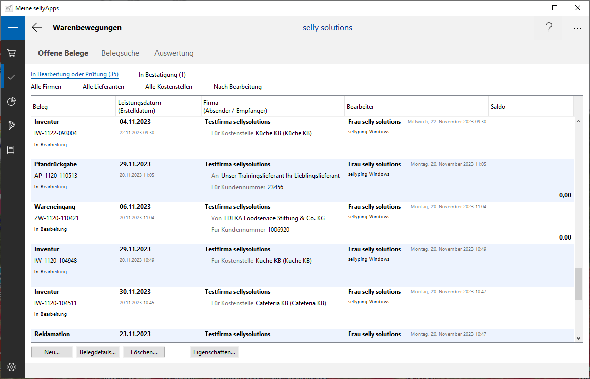 Die Funktionen der Warenbewegungen stehen Ihnen in den sellyApps und in der Bestell-App sellyping zur Verfügung.