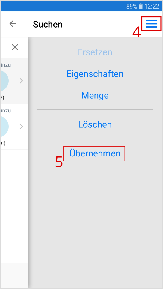 Sie alle Artikel korrekt, übernehmen Sie diese mittels gleichlautenden Link (s. Markierung 5) in Ihren aktuellen Beleg.
