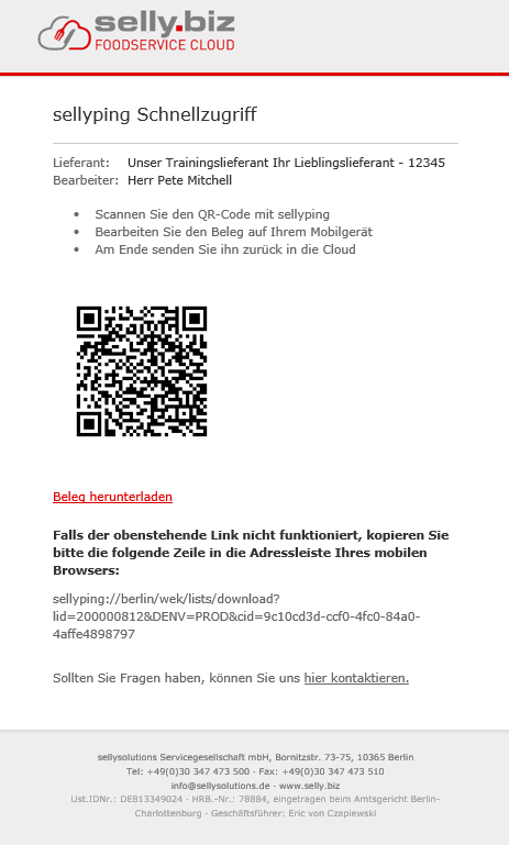 Sie nutzen den Datenaustausch über die selly Foodservice Cloud.