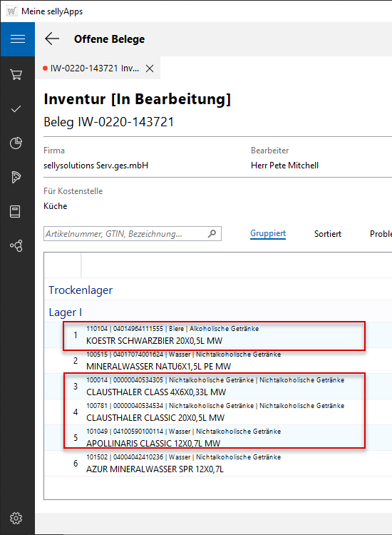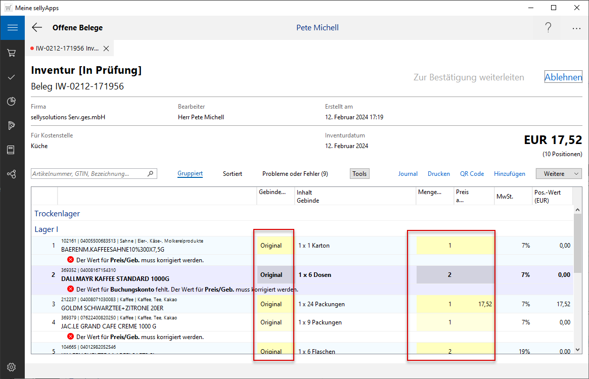 fünf Belegpositionen nicht fehlerfrei bzw. bedürfen eine Sichtung durch den Bearbeiter.