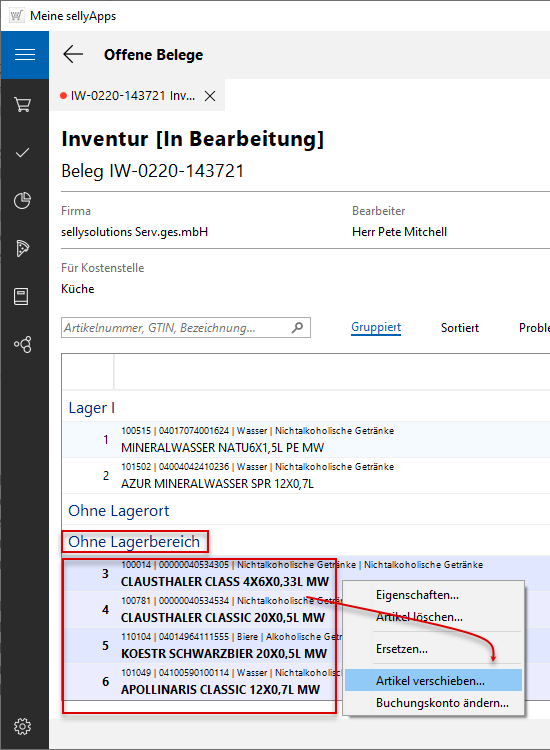 Um bspw. eine Position auf eine andere Kostenstelle zu verschieben, nutzen Sie ebenfalls im Mausmenü den Eintrag Artikel verschieben...