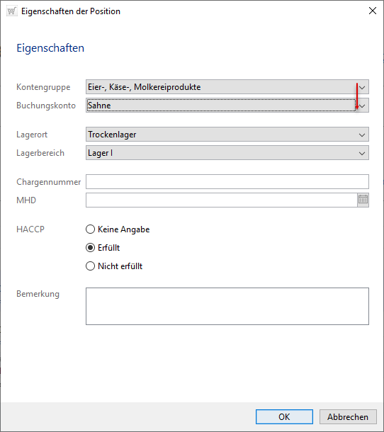 Möchten Sie eine Chargennummer, MHD oder eine Bemerkung hinterlegen, ist dies hier ebenfalls möglich,