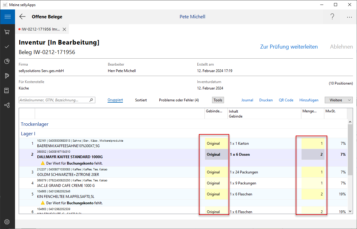 Sind die Angaben in Ihrem Inventurbeleg nicht korrekt, nehmen Sie