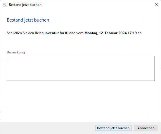 Mit einem letzten Klick auf [Bestand jetzt buchen] schließen Sie den Buchungsvorgang Ihres Inventurbeleges ab.